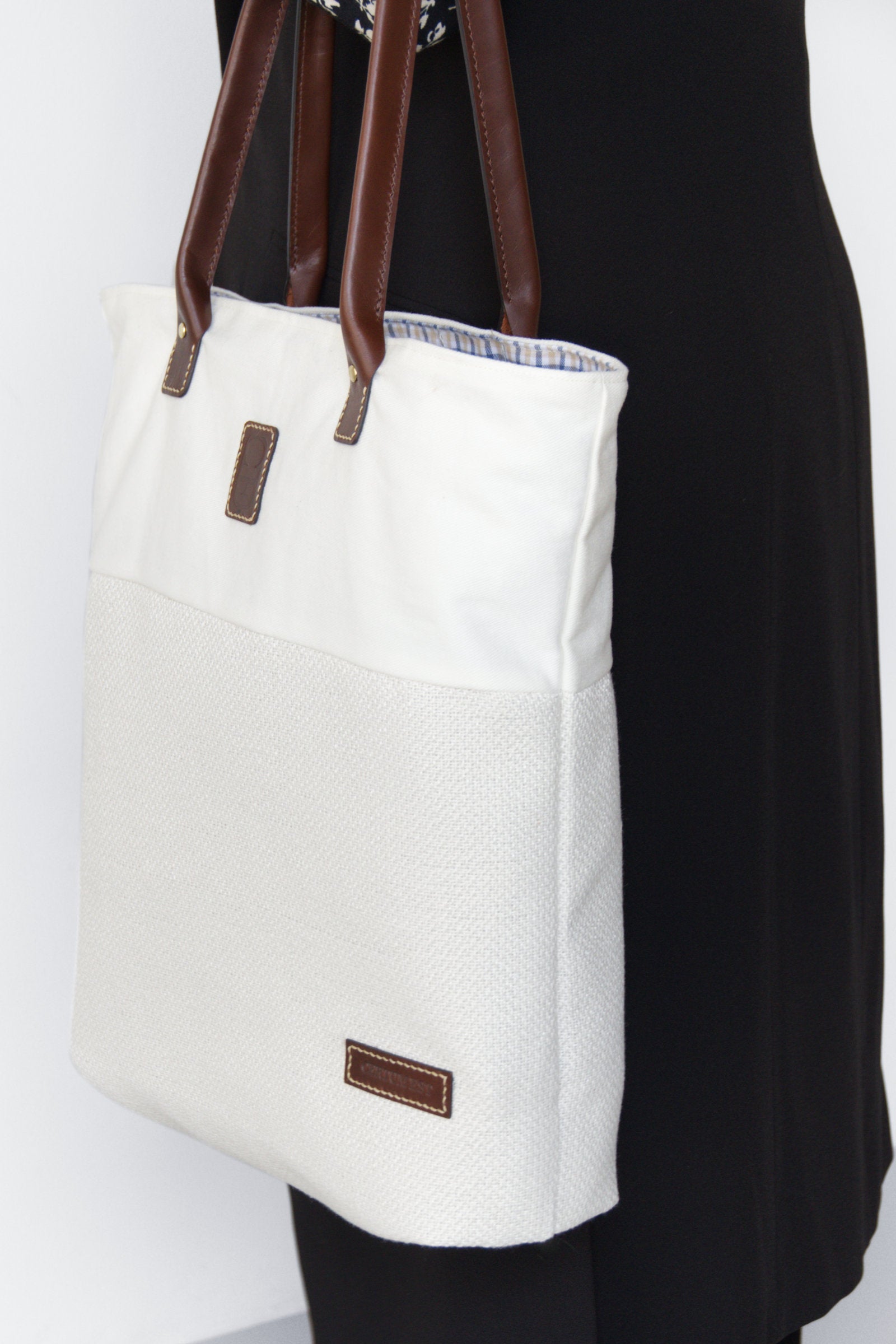 Hecho a mano, nuestro bolso tote Marysol tiene un estilo versátil, con un espacioso interior para todos los elementos esenciales. Con asas de cuero y confeccionado con diferentes tejidos, entre ellos los interiores, de cuadros azules y amarillos, y el otro, de seda marfil.